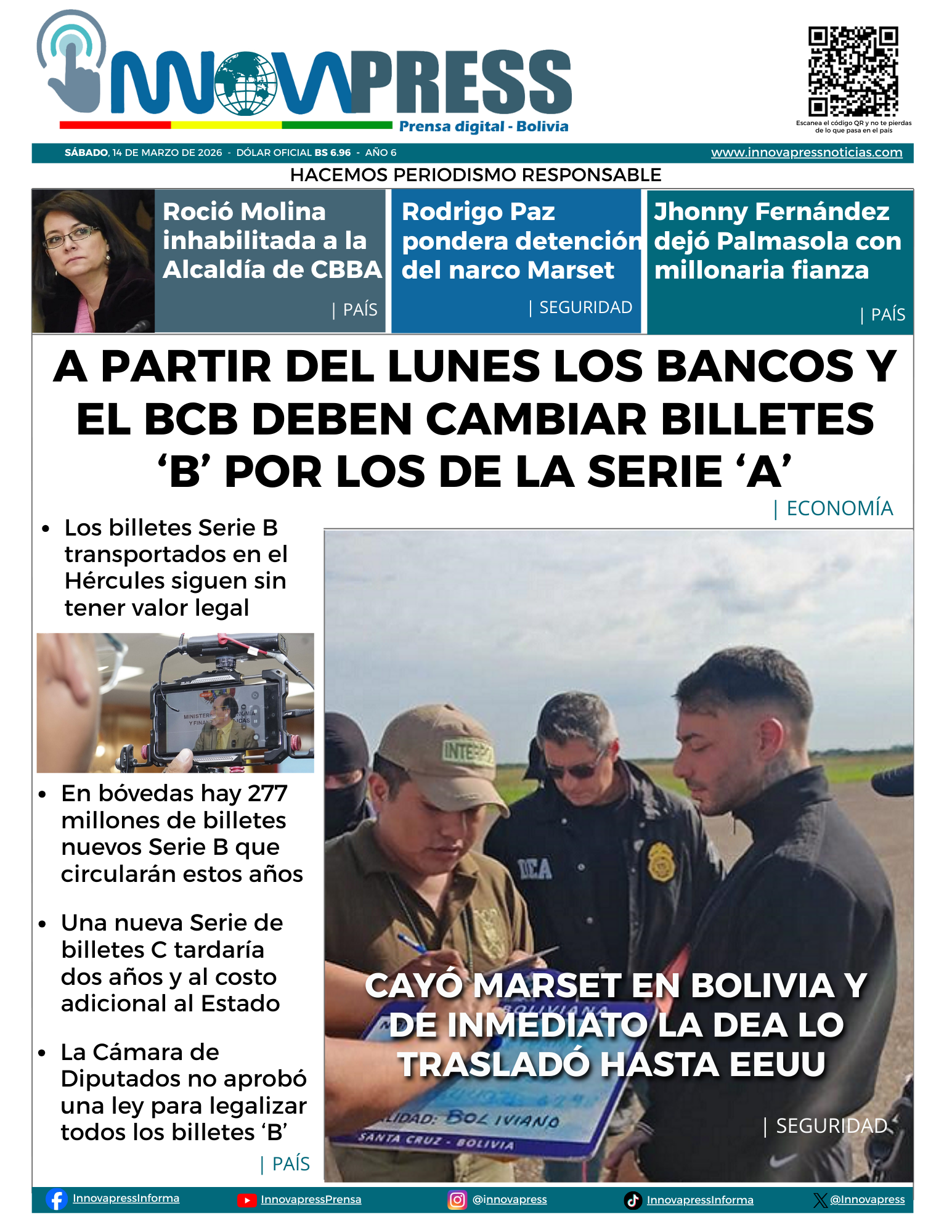 Oficial: Bs 6,96 Referencial: Bs 9,13