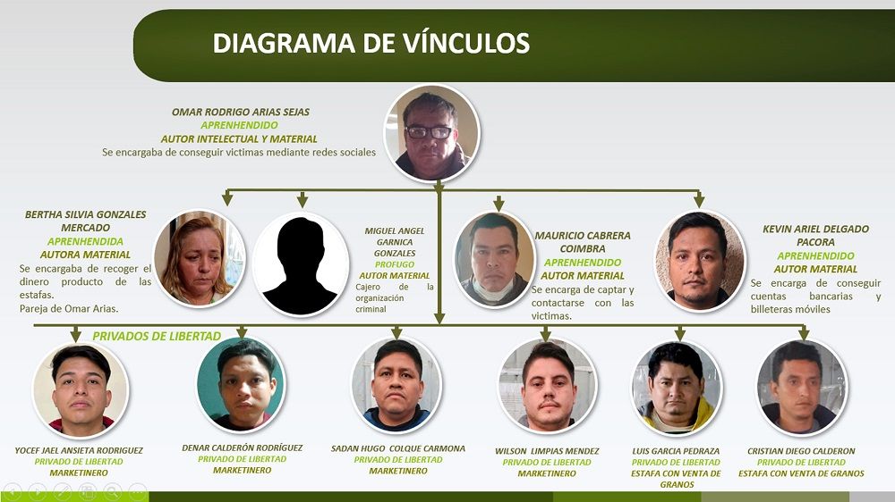 El viceministro de Régimen Interior y Policías, Jhonny Aguilera, explicó que esta red de estafadores virtuales, elegían víctimas al azar en redes sociales donde conseguía los números telefónicos y hacía creer en muchos casos que un familiar fuera del país se encontraba enfermo y necesitaba ayuda económica.