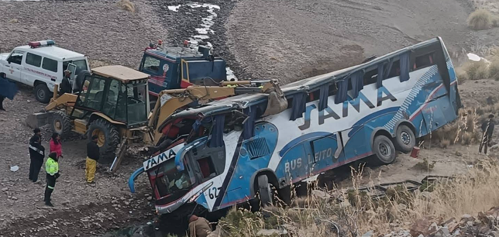 Oruro, Innovapress, 4 sep 2025.- Un accidente de tránsito protagonizado por la flota de la empresa Sama que partió el miércoles de Tarija a La Paz se embarrancó a la altura de la represa de Tacagua, kilómetros antes de Challapata.