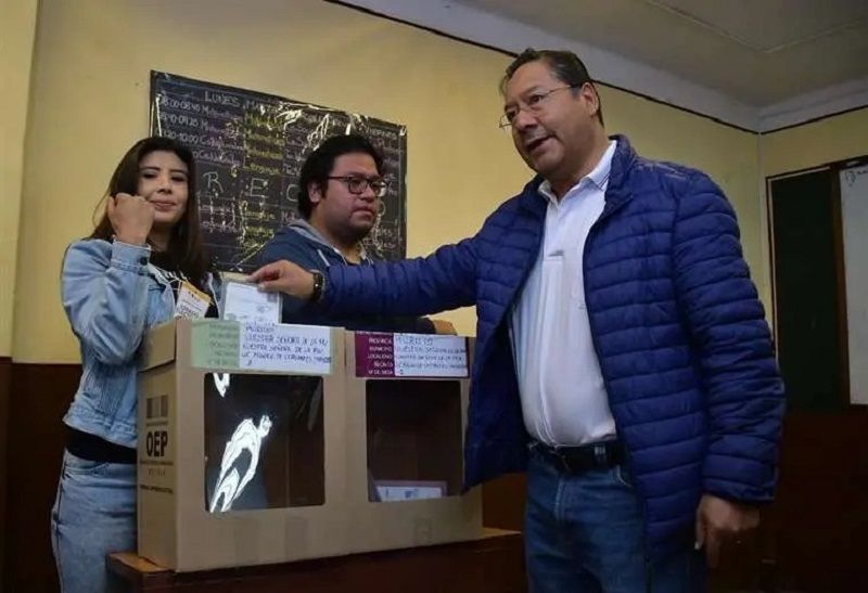 Arce sufragó en la mesa 1 del Colegio Miguel de Cervantes, ubicado en el barrio de Miraflores de la ciudad de La Paz.