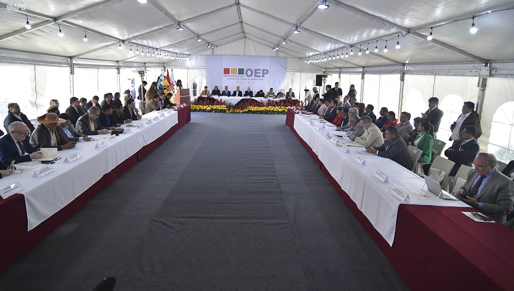 El cónclave contó -por vez primera- con la presencia del jefe de Estado en representación del poder Ejecutivo, aunque también estuvieron el vicepresidente, David Choquehuanca, los presidentes de las cámaras de Senadores, Andrónico Rodríguez y de Diputados, Omar Yujra, al igual que los representantes y jefes de bancada de las 14 organizaciones políticas con personería jurídica, entre ellos el presidente del partido en función de Gobierno, MAS, Grover García. Fue notoria la ausencia de Evo Morales.