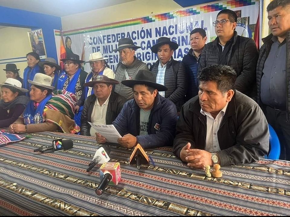 El secretario general de la Confederación Sindical Única de Trabajadores Campesinos de Bolivia (Csutcb), Mario Seña, dio lectura a una resolución aprobada luego de una reunión de emergencia de organizaciones sociales que apoyan al Gobierno.