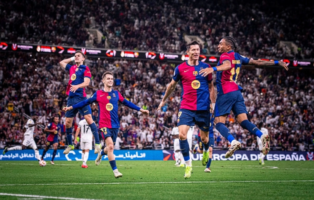 Yeda, Innovapress, 12 ene 2025.- Barcelona aprovechó un fenomenal primer tiempo, anotó cinco goles en 25 minutos y le ganó por 5 a 2 a Real Madrid para consagrarse campeón de la Supercopa de España en Yeda.