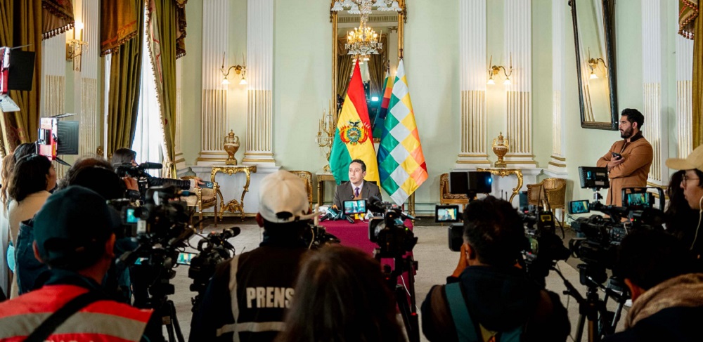 El viceministro de Gestión Consular, fernando Pérez en rueda de prensa en La Paz/ Cancillería