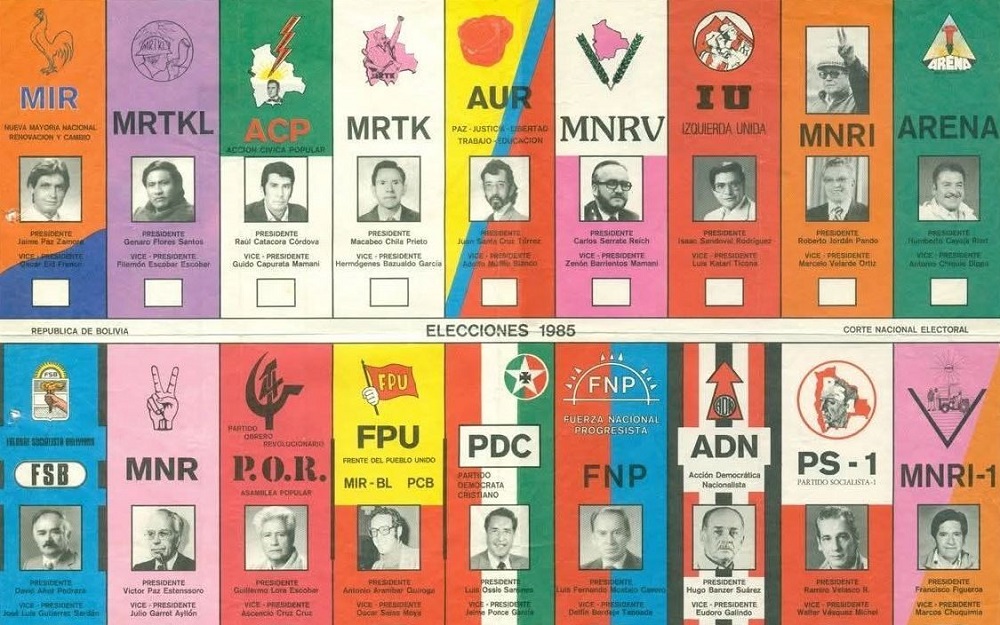 Acción Democrática Nacionalista (ADN): Fundada en 1979 por Hugo Banzer Suárez, representaba a sectores de derecha y militares retirados.