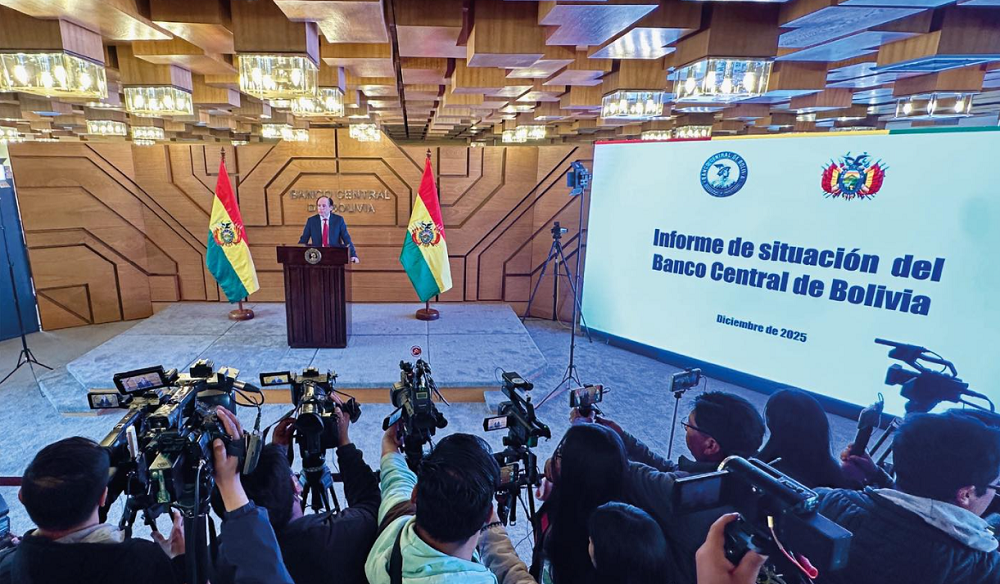El titular del BCB informó que las RIN bajaron de 6.468 millones de dólares en 2019 a 1.709 millones en 2023, con una recuperación parcial a 3.167 millones al 7 de noviembre de 2024. Sin embargo, aclaró que el saldo “es engañoso”, porque la mayor parte corresponde a oro, no a divisas líquidas.