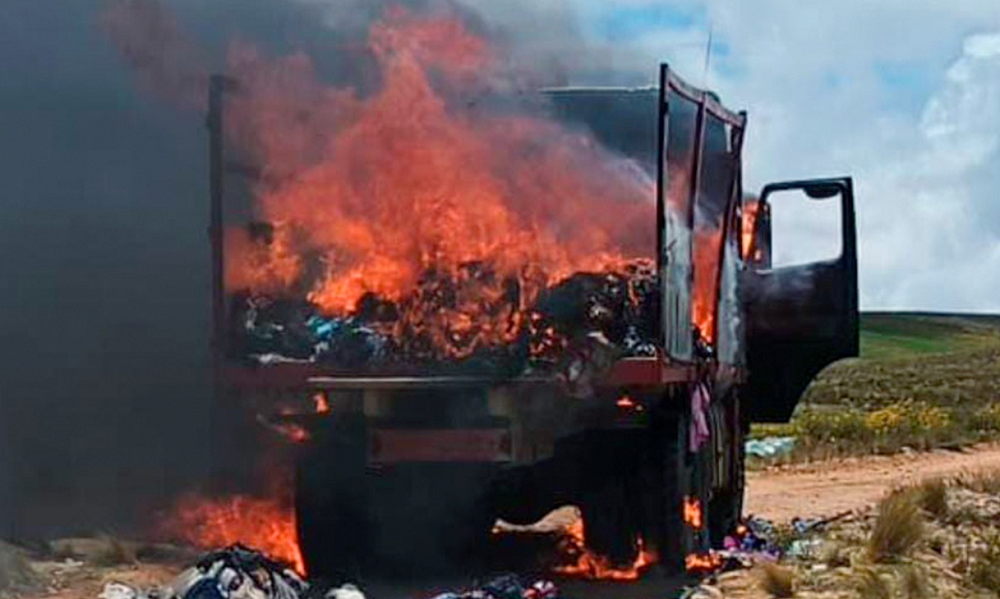 Continúa el flagelo del contrabando, un camión con ropa usada es incinerado cuando intentaba ingresar a La Paz
