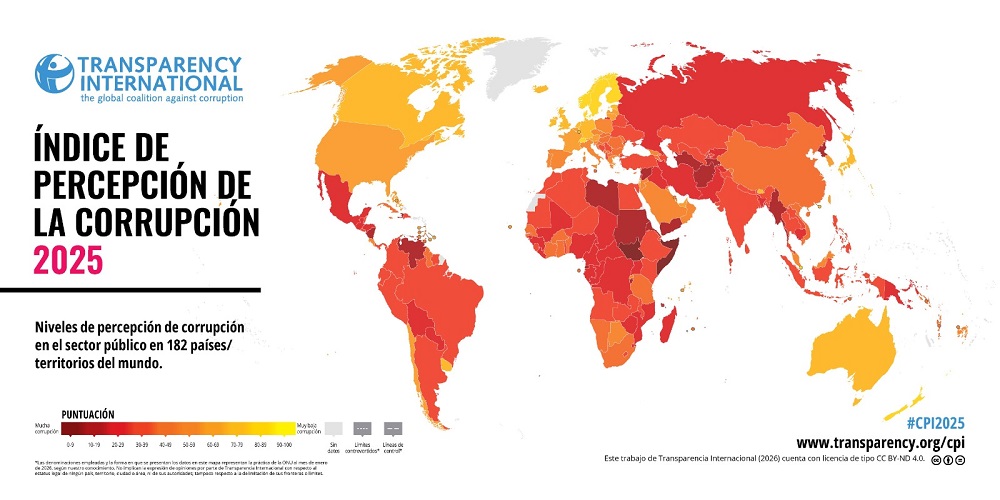 La Paz, Innovapress, 10 feb 2026.- Bolivia en el peldaño 136 de 182 países en el Índice de Percepción de la Corrupción (IPC) 2025, publicado este martes por Transparencia Internacional en su edición 31.