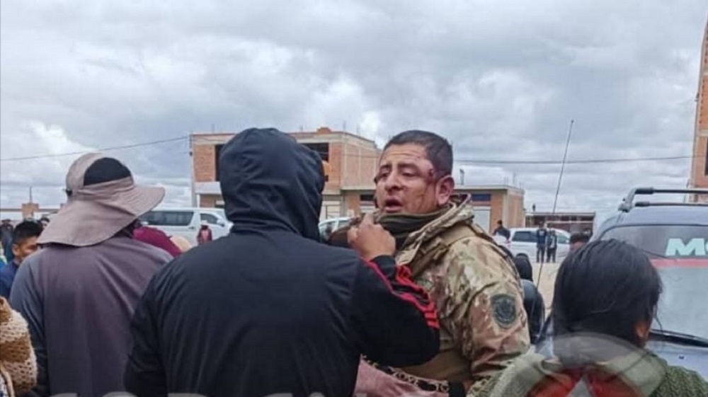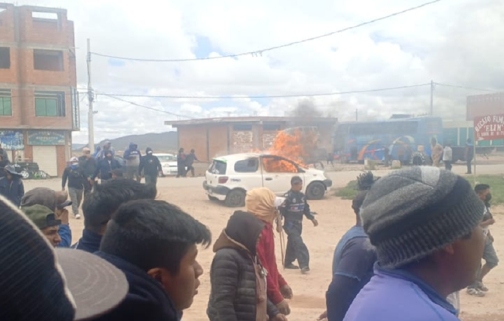 Los efectivos se dirigían a El Alto, trasladando el vehículo incautado en la frontera cuando fueron emboscados por un grupo que intentaba recuperar el motorizado. El vehículo indocumentado en cuestión fue incendiado.