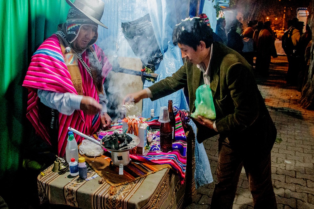 Al mediodía del 24 de enero, las miniaturas son bendecidas con sahumerios, incienso y oraciones por amautas (sabios andinos) y sacerdotes católicos, mezclando la fe andina con la cristiana. La tradición reza que todo lo que se pide en miniatura se hace realidad.
