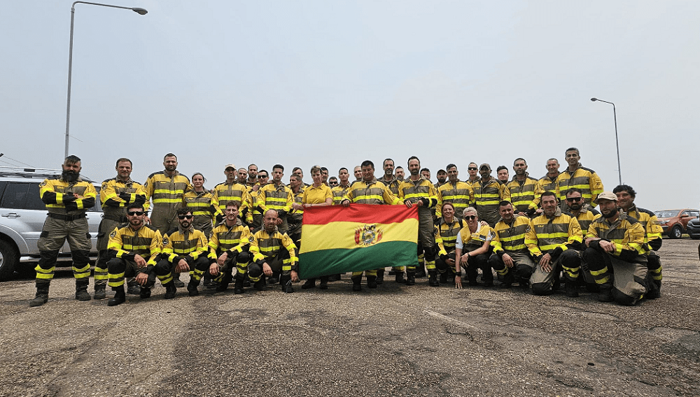 Un equipo de 41 bomberos forestales y 8 especialistas de España arribaron este sábado se sumaron a los trabajos de lucha contra los incendios forestales en la Chiquitanía cruceña.