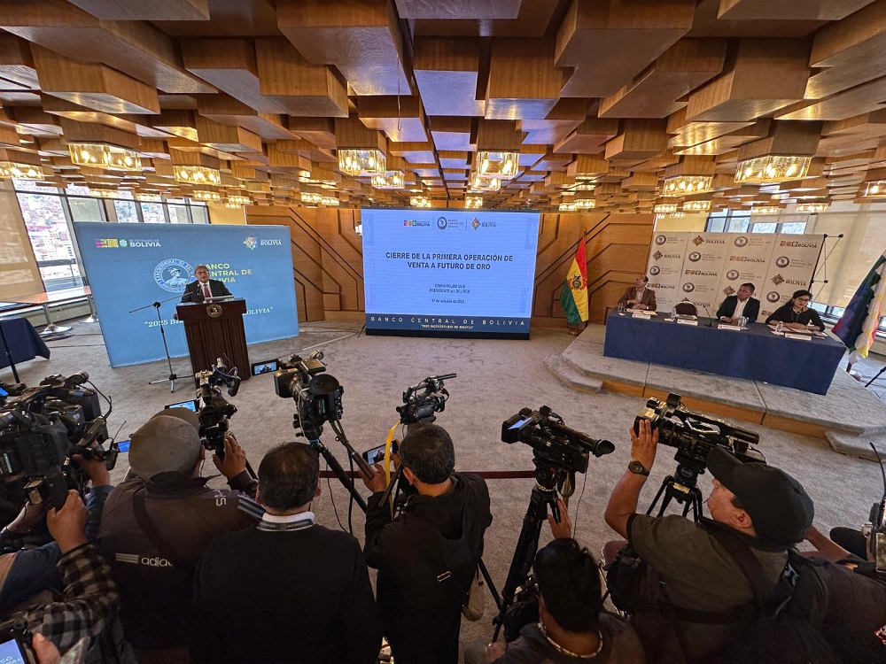 La Paz, Innovapress, 17 oct 2025.- El Banco Central de Bolivia (BCB) reportó el viernes que este jueves 16 de octubre culminó de forma exitosa la operación de venta a futuro de oro sin desplazamiento por tres (3) toneladas, iniciada en abril, que permitió generar más de $us 388 millones de divisas para cumplir las obligaciones del Estado.