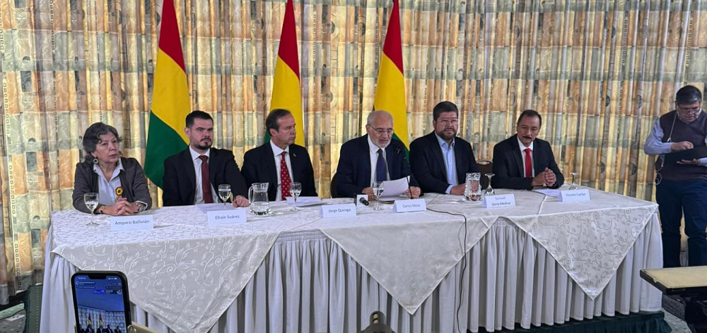 “En esta ocasión tengo el gusto de comunicar al pueblo boliviano la incorporación de Vicente Cuéllar y Amparo Ballivián a la unidad de la oposición democrática boliviana. Ambos se convierten, como nosotros, en precandidatos y entre quienes la población elegirá a un candidato de la unidad”, dijo Mesa.