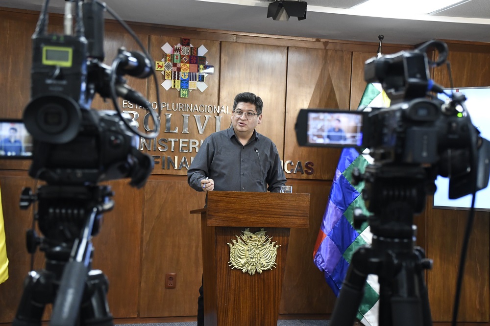 El ministro Marcelo Montenegro en rueda de prensa/ MEFP