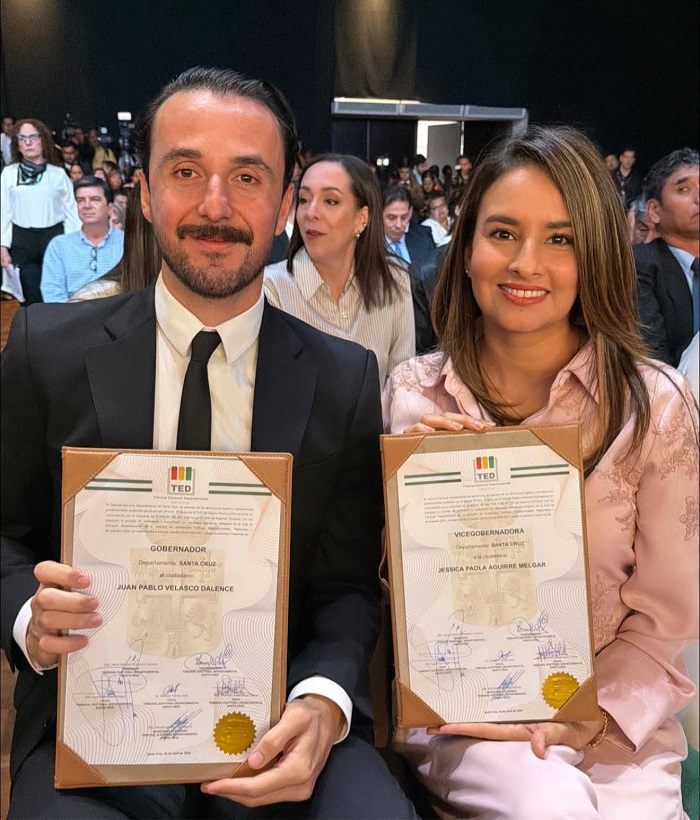 Juan Pablo Velasco y Paola Aguirre, gobernador y vicegobernadora de Santa Cruz exponen sus credenciales/ TED SCZ