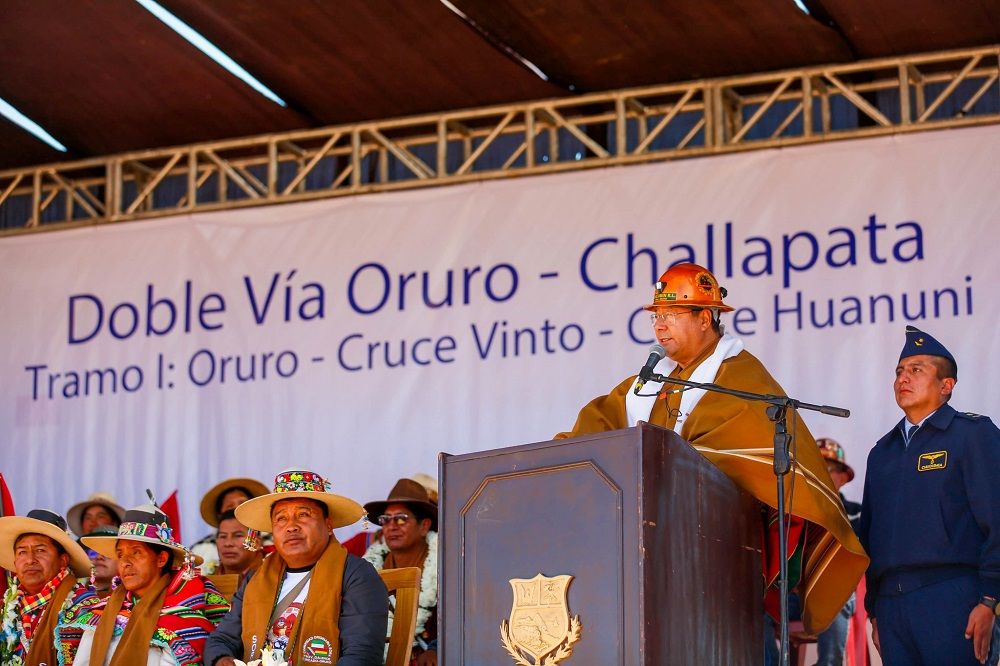 Oruro, Innovapress, 13 may 2024.- En el municipio de Soracachi, a 60 km de la capital, el presidente Luis Arce presidió este lunes el inicio de la construcción de la doble vía Oruro-Challapata, en su tramo I: Oruro-Cruce Vinto-Cruce Huanuni.