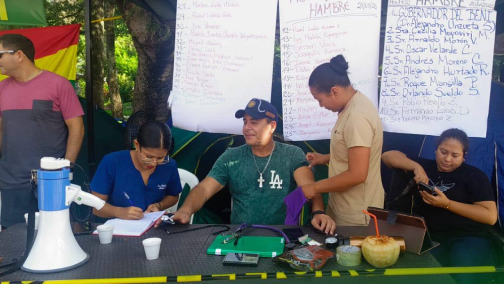 Unzueta presidente un piquete de ayuno voluntario en Trinidad por presupuesto sin recortes/ Gobernación