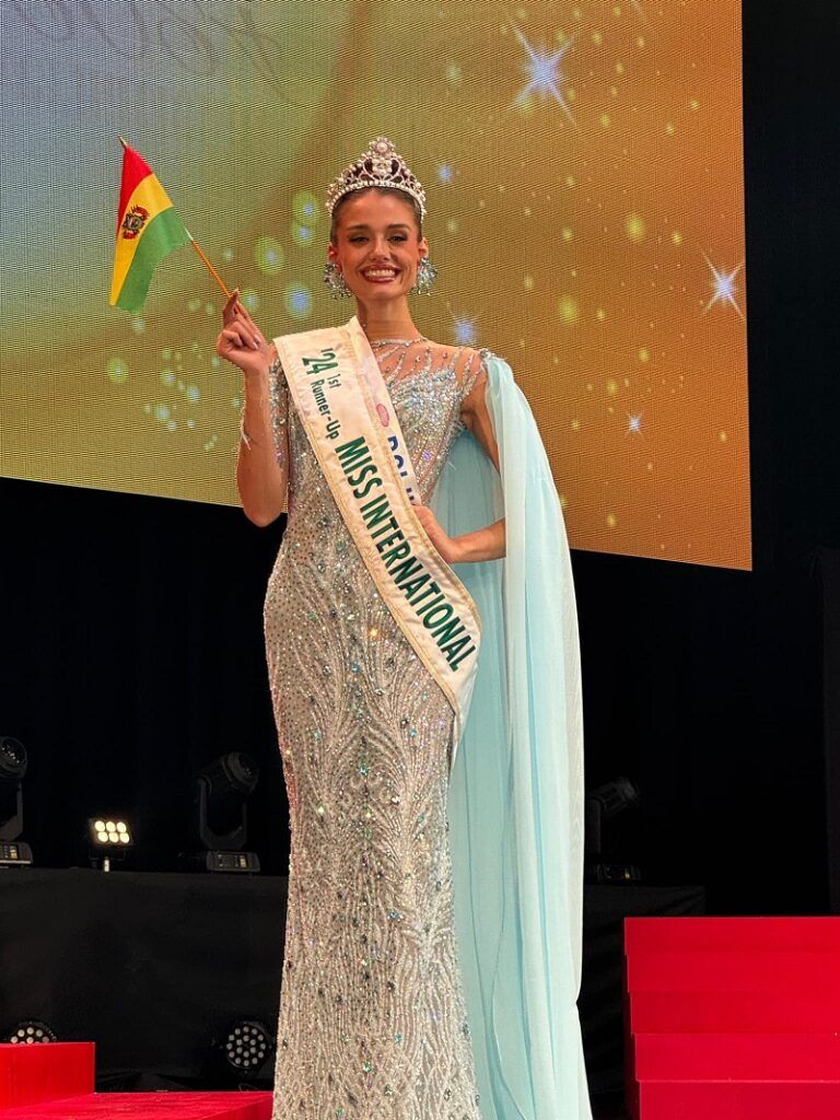 Santa Cruz, Innovapress, 12 nov 2024.- La boliviana Camila Ribera Roca, de 26 años, nacida en Santa Cruz, se coronó Virreina en el certamen de belleza Miss International 2024, celebrado en Tokio, Japón. Es un logro para Bolivia, al ser la posición más alta alcanzada por el país en un certamen de belleza mundial.