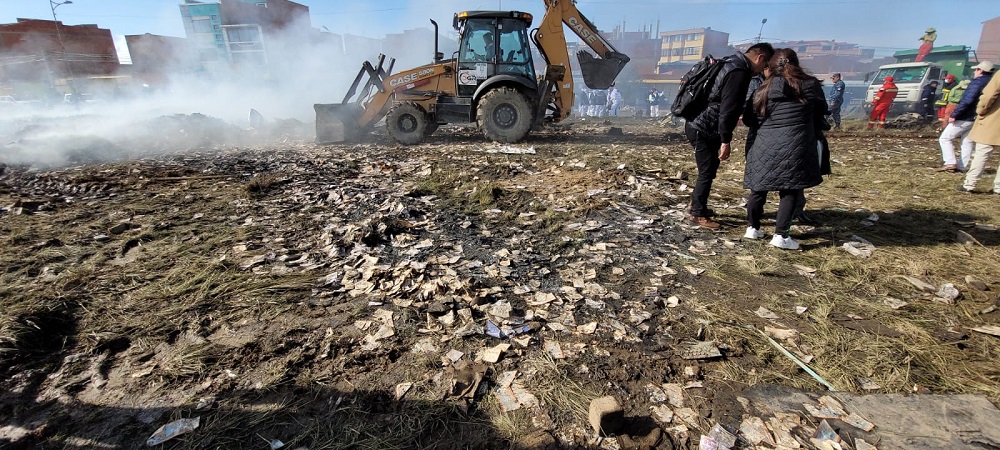 En imágenes en redes sociales se observa cómo cientos de personas se agolparon sobre el dinero que transportaba el avión militar, un Hércules C-130 de la FAB destinado al Banco Central de Bolivia, en vez de ayudar con la asistencia humanitaria.