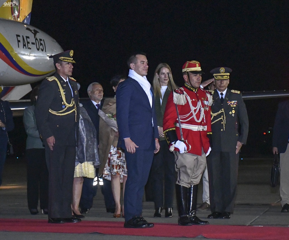 Noboa fue el tercer presidente en arribar hasta territorio nacional para la ceremonia de transmisión de mando, precedido por el mandatario uruguayo Yamandú Orsi y el chileno Gabriel Boric.