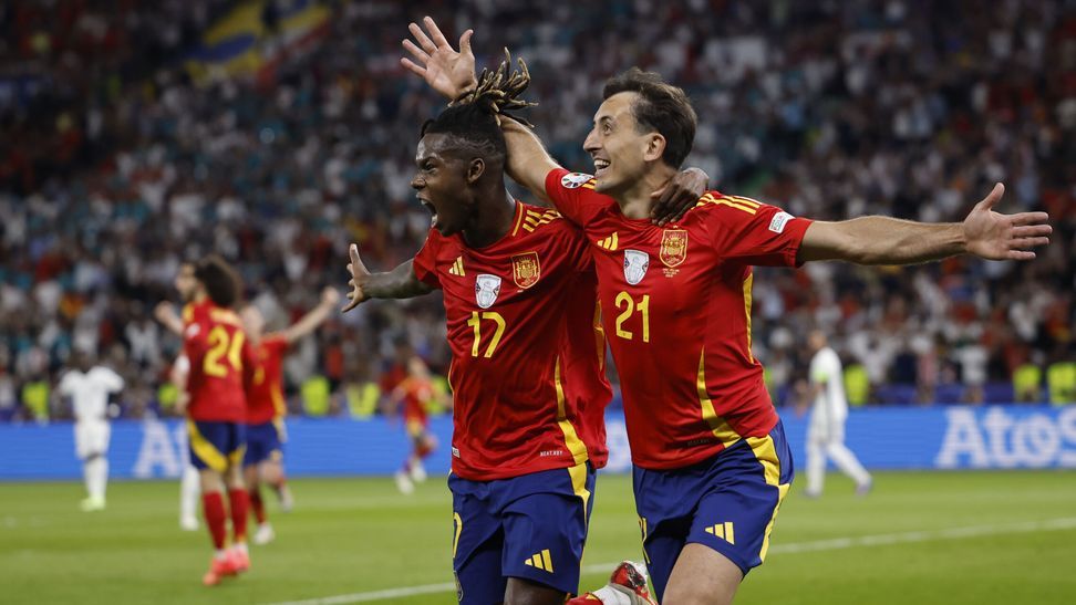 En el minuto 47, el dinámico Lamine Yamal, de 17 años, cedió el balón a Nico Williams, quien remató a la escuadra para batir al guardameta inglés Jordan Pickford y abrir el marcador.