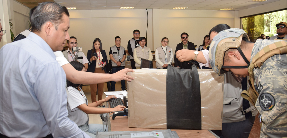 Según el cronograma, la distribución masiva hacia las áreas rurales se realizará entre jueves, viernes y sábado, mientras que el traslado de las maletas electorales para las ciudades de La Paz y El Alto se efectuará entre viernes y sábado.