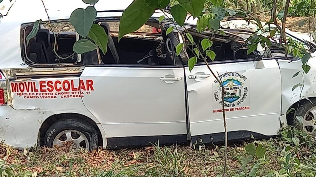 El hecho se suscitó cuando una vagoneta de color perla, del Núcleo Escolar Puerto Choré, 3 de Marzo del Distrito 11, del municipio de Yapacaní, se salió de la vía, dando un vuelco en tonel causando los decesos.