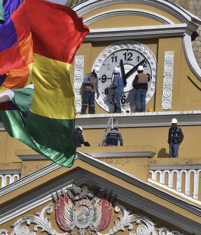 La restitución del sentido de las manecillas del reloj es parte de los actos preparativos para la investidura de Rodrigo Paz que al mismo tiempo implica dejar atrás al gobierno del MAS que orientó los destinos de Bolivia por 20 años.