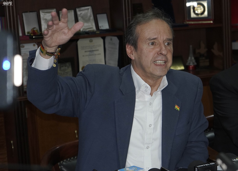 Jorge Tuto Quiroga en conferencia de prensa sobre el levantamiento abrupto del subsidio a los combustibles/ APG