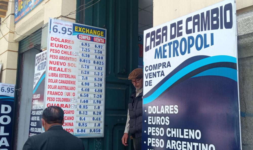 En Bolivia el tipo de cambio oficial del dólar es Bs 6,96 para la venta y Bs 6,86 para la compra.