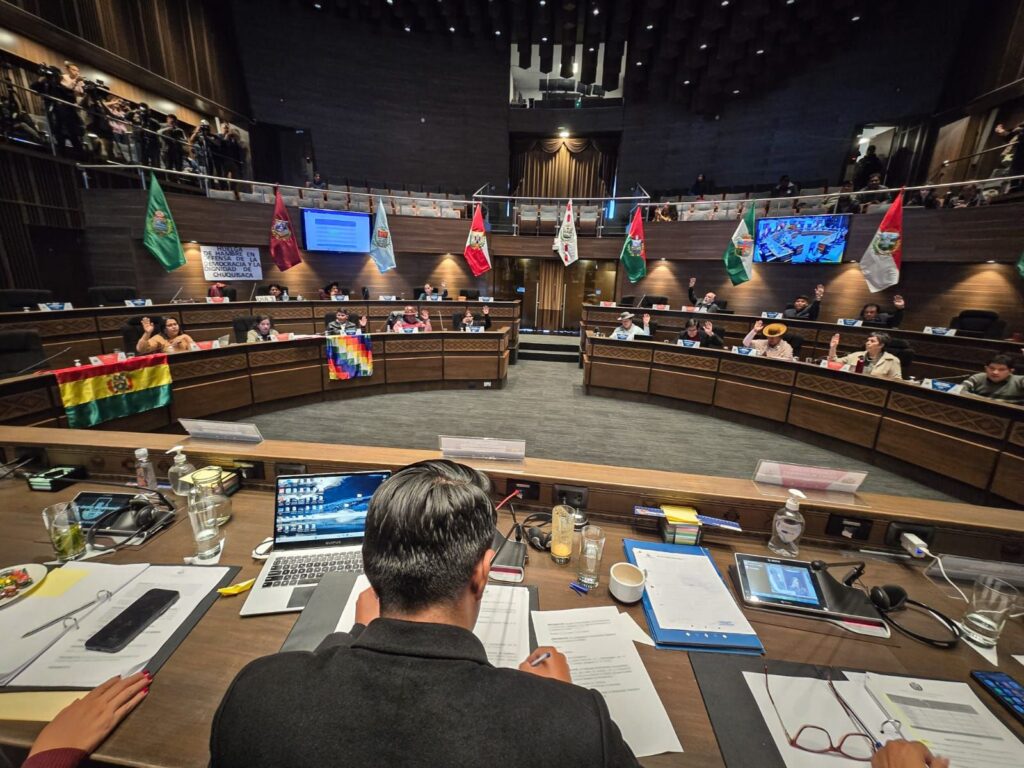 “Habiéndose aprobada la ley en sus dos estaciones y siendo la Cámara de Senadores la cámara revisora, queda sancionada la presente ley y se remite al Órgano Ejecutivo para fines constitucionales de promulgación”, sentenció el presidente de la Cámara de Senadores, Andrónico Rodríguez.