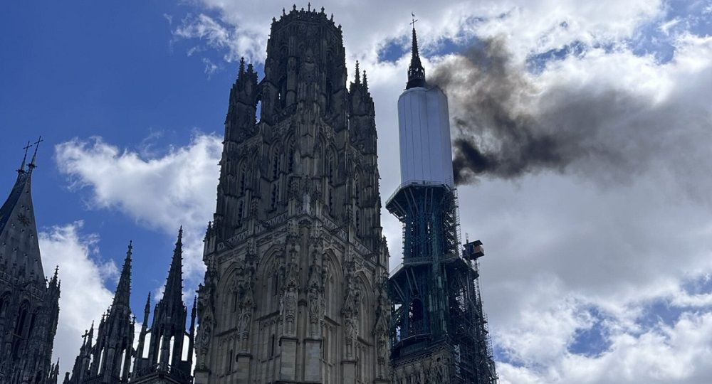 Innovapress, 11 jul 2024.- Los Bomberos han conseguido contener el fuego que se originó en la aguja de la Catedral de Ruan. Testigos aseguran haber visto humo saliendo de la aguja de la catedral de Ruan (Normandía, Francia) este mediodía del jueves, lo que recordó al devastador incendio que en 2019 afectó a la catedral de Notre-Dame de París.