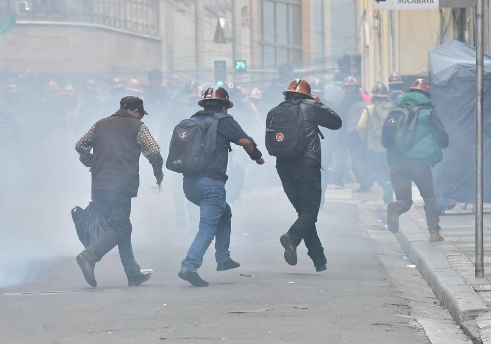 La COB ha convertido el centro de la ciudad de La Paz en escenarios diarios de medidas de protesta, por su lado, la Policía antimotines resguarda sigilosamente el centro del poder político de plaza Murillo. Los primeros buscan ingresar hasta la principal plaza de armas y, en ello, se producen las refriegas.