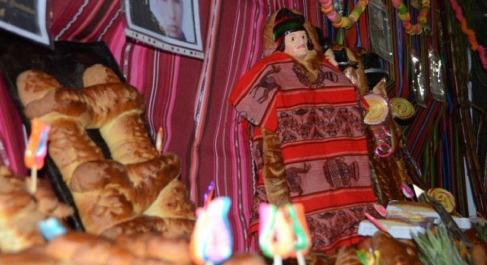 En la mesa, se disponen los alimentos que más solía disfrutar el fallecido, además de diferentes y pequeñas figuras hechas con masas de pan, como una escalera que es horneada «para que baje el muerto del cielo y, por medio de esta misma, después se vaya», según el antropólogo, Milton Eyzaguirre.