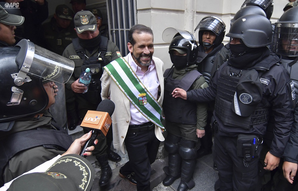 Camacho llegó a los tribunales sobre la calle Yanacocha en La Paz antes de las 8:30, la audiencia estaba pactada para las 8:45, en ella se debía definir si se le concedía la libertad condicional o si continuaría recluido en el reclusorio emplazado en el altiplano de Viacha.