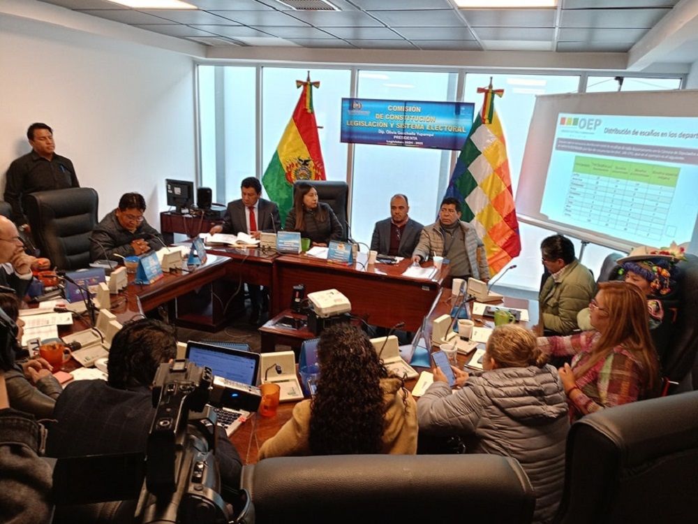 La diputada Olivia Guachalla, presidenta de la Comisión de Constitución de Diputados, dijo, tras concluir la reunión de esa instancia, que terminaron la socialización de la norma y convocaron para este miércoles a las 17:00 para su tratamiento y aprobación para luego remitirla al pleno.