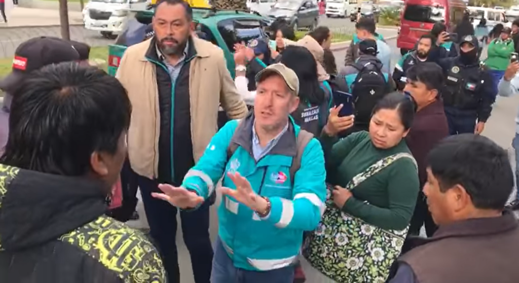 La Paz, Innovapress, 24 feb 2025.- Los efectivos azules de la Guardia Municipal en varios puntos de la ciudad de La Paz están siendo objeto de agresiones de irracionales conductores de minibuses y trufis que, a toda costa, sin autorización quieren imponer su tarifa arbitraria de incrementar en 0,50 centavos el pasaje urbano en La Paz, se constató.