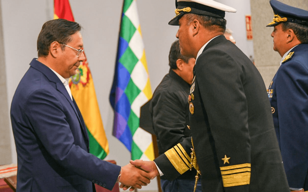 La Paz, Innovapress, 11 ene 2024.- El presidente y capitán general de las Fuerzas Armadas (FFAA) Luis Arce dio posesión este jueves a cinco nuevos jefes del Alto Mando Militar, demandándoles compromiso y defensa de la integridad nacional.