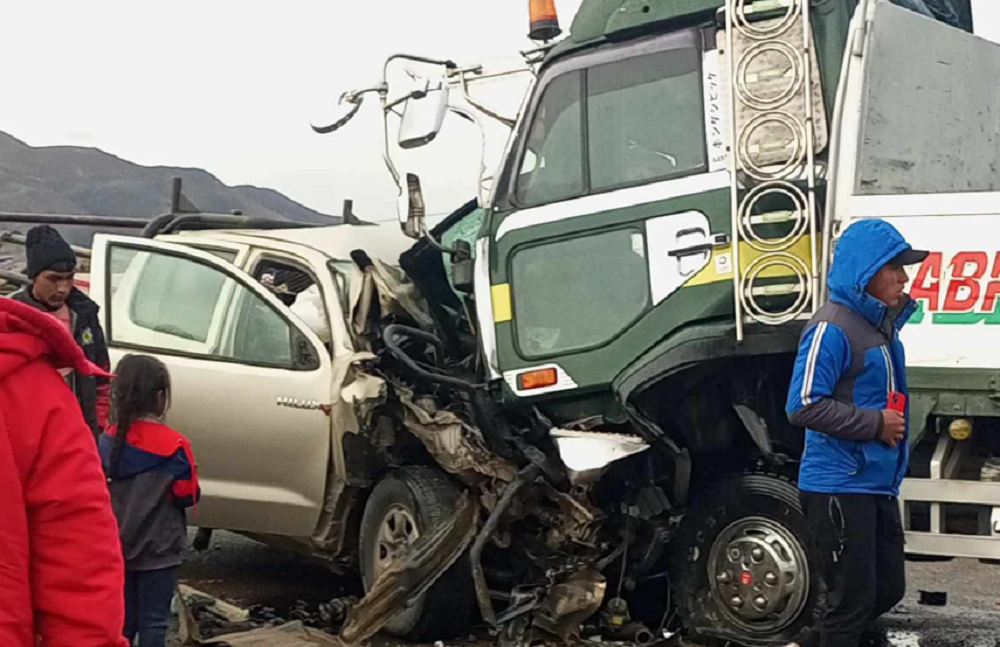 El accidente se suscitó aproximadamente a las 18:00 en el sector Merkaymaya, sobre la carretera Diagonal Jaime Mendoza en Uncía cuando una vagoneta y un camión Nissan Cóndor colisionaron de manera frontal, dejando ambos vehículos con daños materiales de consideración y sus estructuras delanteras totalmente destrozadas.