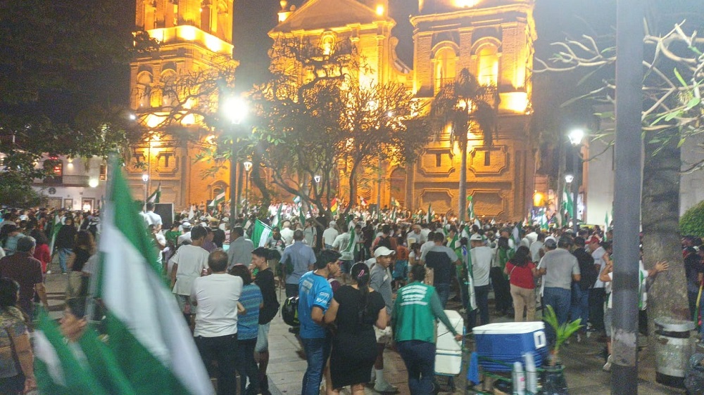 «Esta manifestación es para decirle al pueblo boliviano que estamos dispuestos a que se lleven adelante las elecciones (…) todos queremos participar, queremos ser control electoral y veedores, queremos tener la certeza de que se llevarán adelante», afirmó a EFE el presidente del Comité Cívico Pro Santa Cruz, Stello Cochamanidis, impulsor de la manifestación.