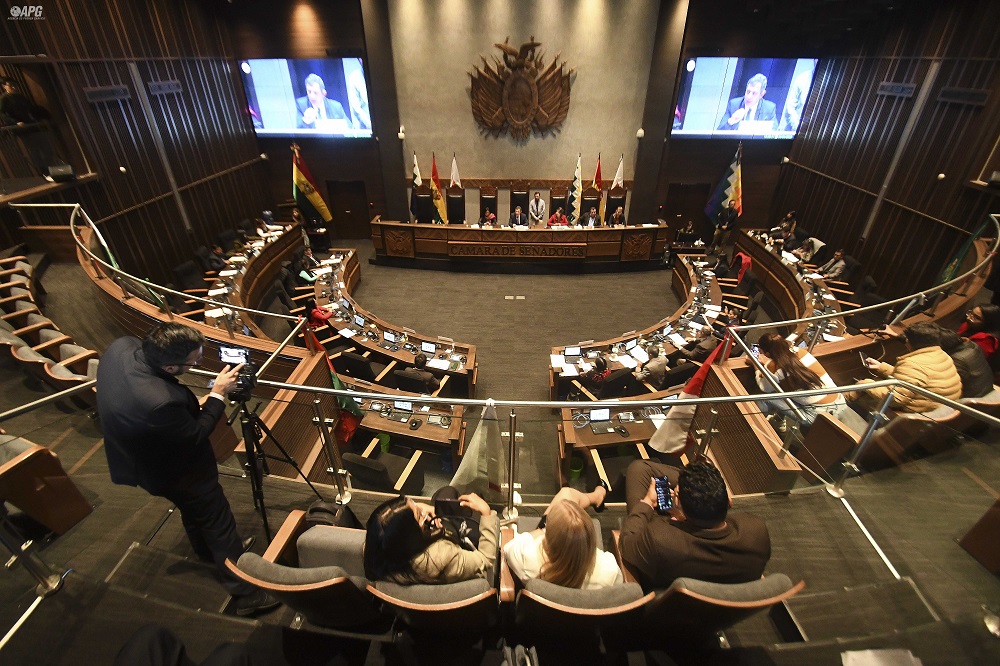 Mauricio Medinaceli en su informe oral al pleno del Senado sobre la calidad de la gasolina/ Foto: Roberto Aranda-APG