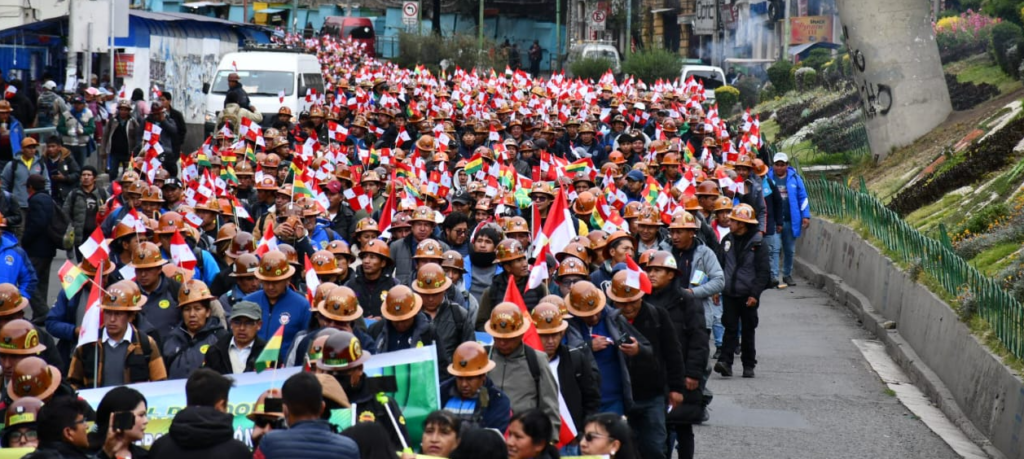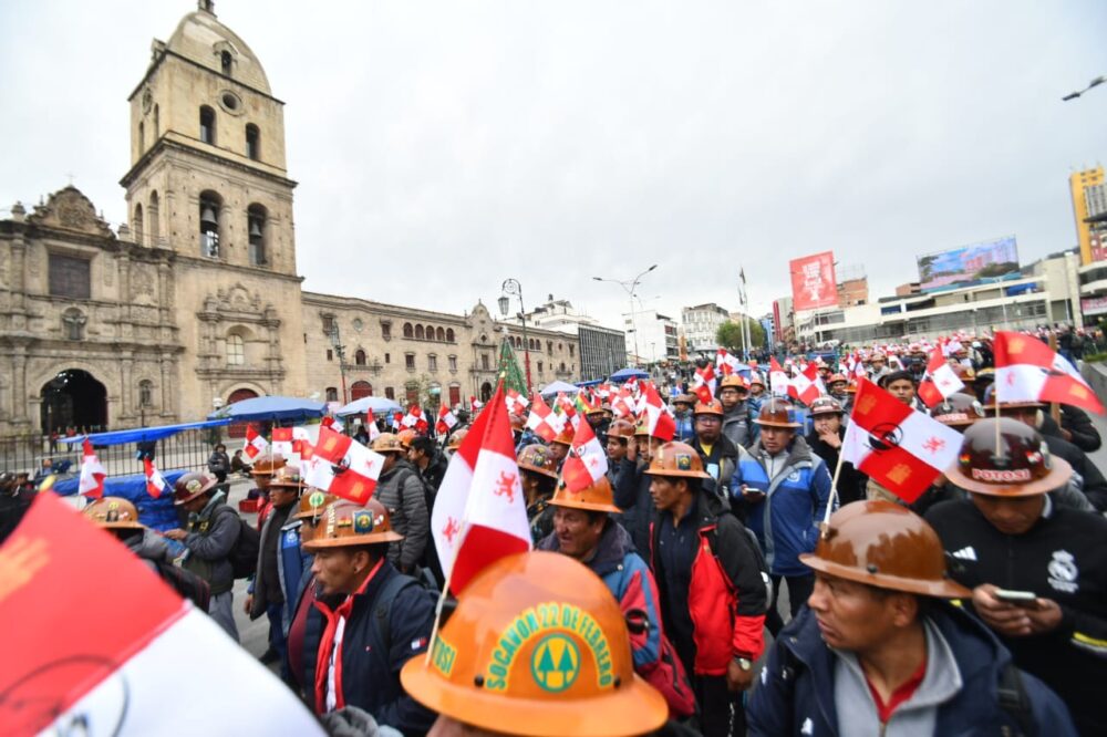 Este lunes, cerca de 3.000 cooperativistas mineros que pertenecen a la Federación Nacional de Cooperativistas Mineros de Bolivia (Fencomin) encararon una multitudinaria marcha que partió de El Alto hasta el centro de La Paz. La Policía desplegó cordones de seguridad en los alrededores del centro del poder político, plaza Murillo.