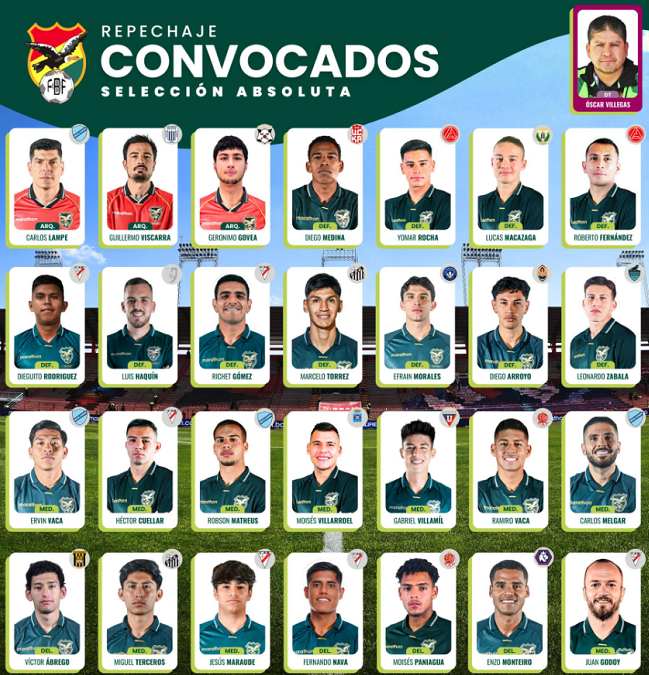 La Paz, Innovapress, 9 mar 2026.- El director técnico de la Selección de Fútbol Bolivia, Óscar Villegas, develó este lunes la lista de 28 convocados para lidiar el repechaje mundialista a disputarse en Monterrey, México.