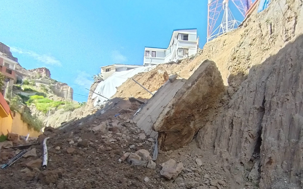 El Grupo de Atención de Emergencias Municipales realizó trabajos en la zona, rodeando la señalización del área afectada y el retiro de la malla olímpica para reducir tensiones en el talud.