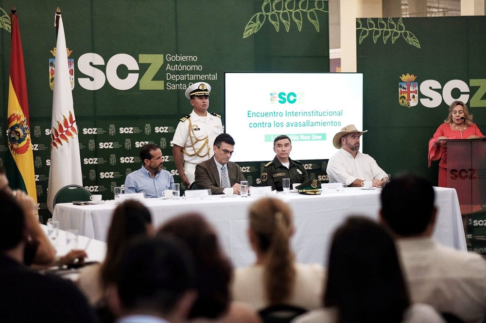 - En un encuentro interinstitucional en Santa Cruz garantizó la presencia del Estado, respeto a la propiedad privada y acabar con los avasallamientos.