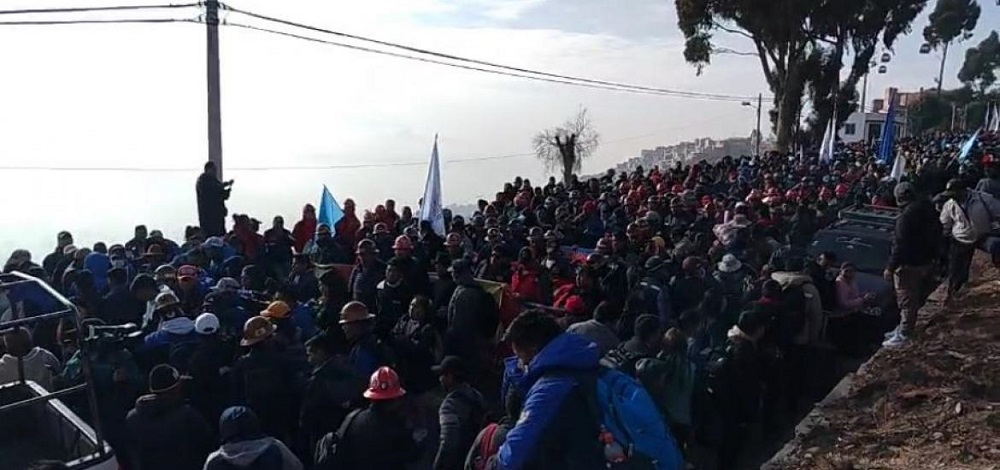 De su lado, el vicepresidente de la Federación de Cooperativas Mineras de Potosí, Efraín Orcko, explicó que se trasladaron a la sede de Gobierno para exigir al Ejecutivo la provisión de diésel y material para desarrollar su trabajo como explosivos. Además, cuestionó el incumplimiento de la entrega de la refinería de zinc.