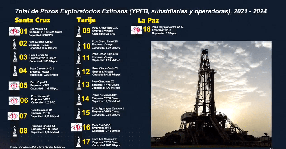 Arce mencionó que quienes están explorando son Yacimientos Petrolíferos Fiscales Bolivianos (YPFB) casa matriz; YPFB Chaco, y el resto son empresas privadas como Vintage.