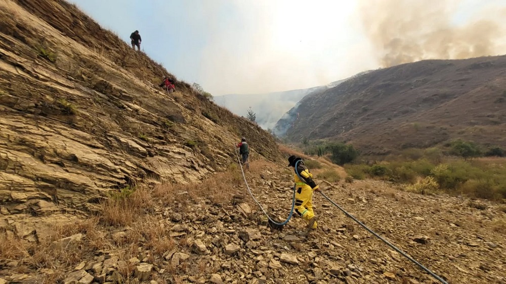 Tarija, Innovapress, 1 ago 2025.- La ciudad de Tarija está respirando aire con altos niveles de contaminación debido al incendio forestal que se registra en la Cordillera de Sama, principal recurso natural que provee de agua a la ciudad capital. El Municipio inició el viernes una campaña solidaria para recibir donativos como colirios y vituallas para asistir la emergencia.