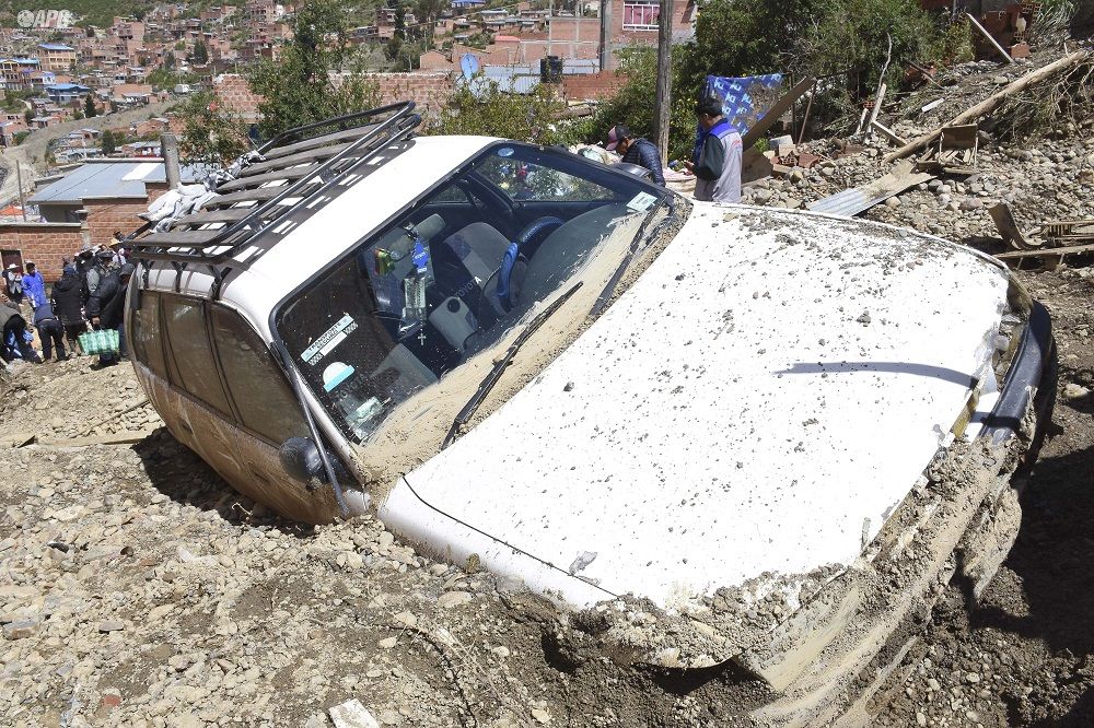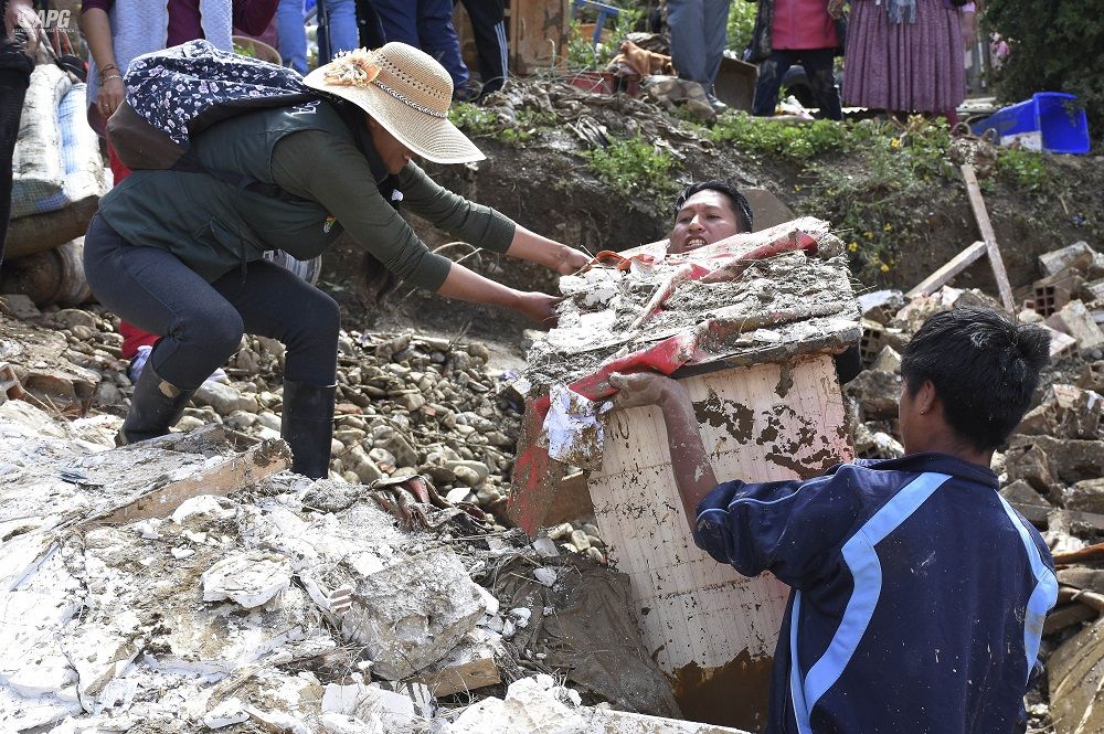 La Paz, Innovapress, 17 feb 2024.- María Isuta Tito, de 35 años junto a sus dos hijos, el niño de siete años y la niña de uno, fueron sepultados la noche de este viernes y la madrugada de este sábado en Achocalla luego de que un talud se desprendiera y los enterrara en la urbanización Arco Iris. El trágico suceso se produjo luego de más de siete horas de intensa lluvia.