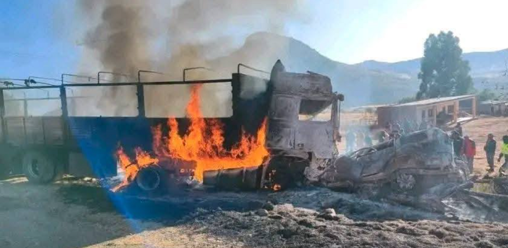 Sucre, Innovapress, 20 ago 2025.- Dos personas perdieron resultaron calcinadas este jueves cuando los motorizados en los que se transportaban impactaran de frente y posteriormente se incendiaran en la carretera Potosí-Sucre, a cinco kilómetros de Betanzos.